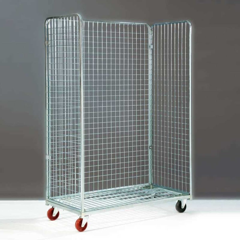 Roll container espositore mm.1200x600x1800h con 3 pareti maglia 50x50 è il carrello ideale per trasporto, stoccaggio, esposizione e per la promozione e la vendita di merci, articoli, prodotti all'interno di negozi, supermercati, grande distribuzione.