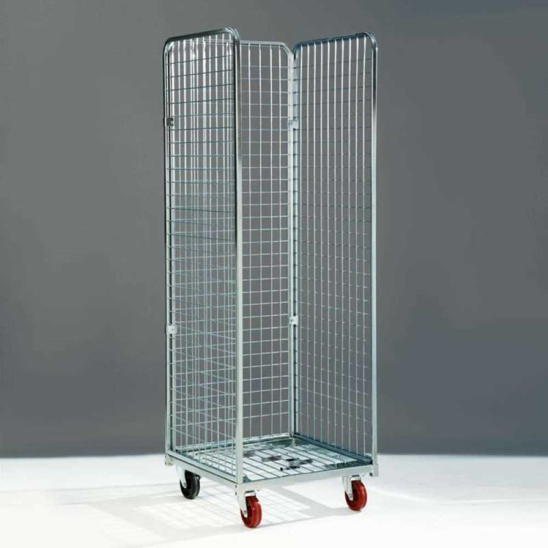 Roll container espositore mm.600x600x1800h con 3 pareti maglia 50x50 è il carrello ideale per trasporto, stoccaggio, esposizione, avanti-cassa e per la promozione e la vendita di merci, articoli, prodotti all'interno di negozi, supermercati, grande distribuzione
