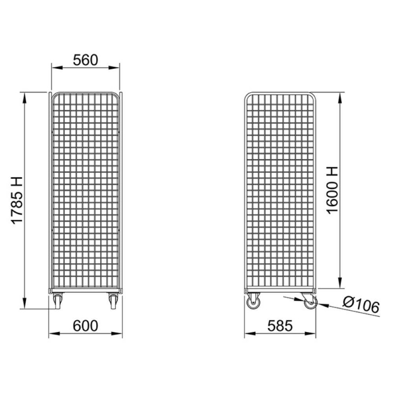 Roll container promo con dimensioni di soli mm.600x600 che permette di essere utilizzato all'interno di camion con dimensione ridotte o di essere movimentato in spazi ridotti all'interno di lavanderie, aziende, magazzini, comunità, alberghi, pubbliche amministrazioni e centri logistici per portare cartoni, sacchi, scatole e pacchi.