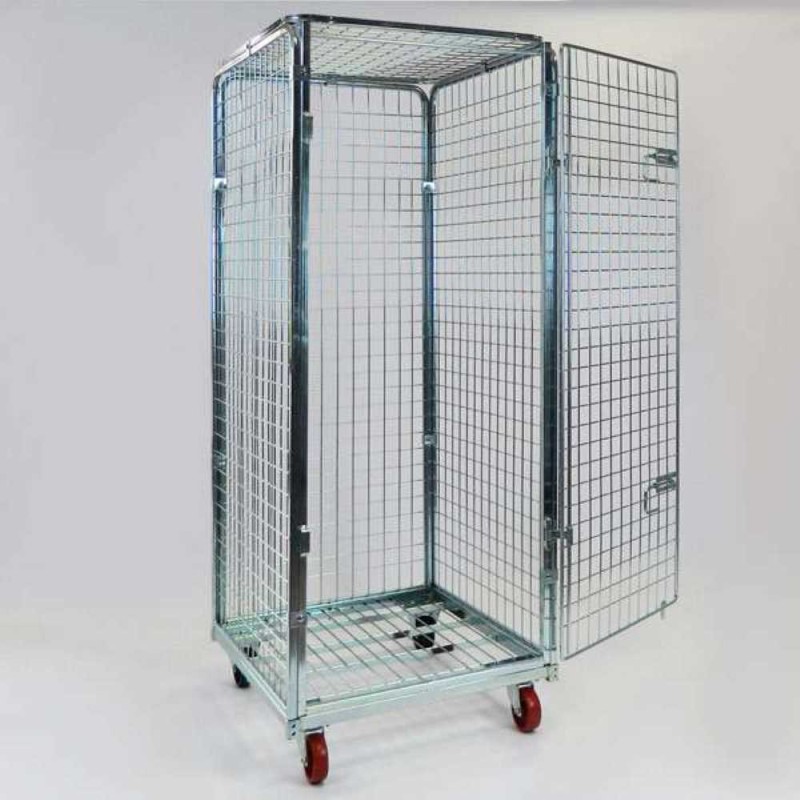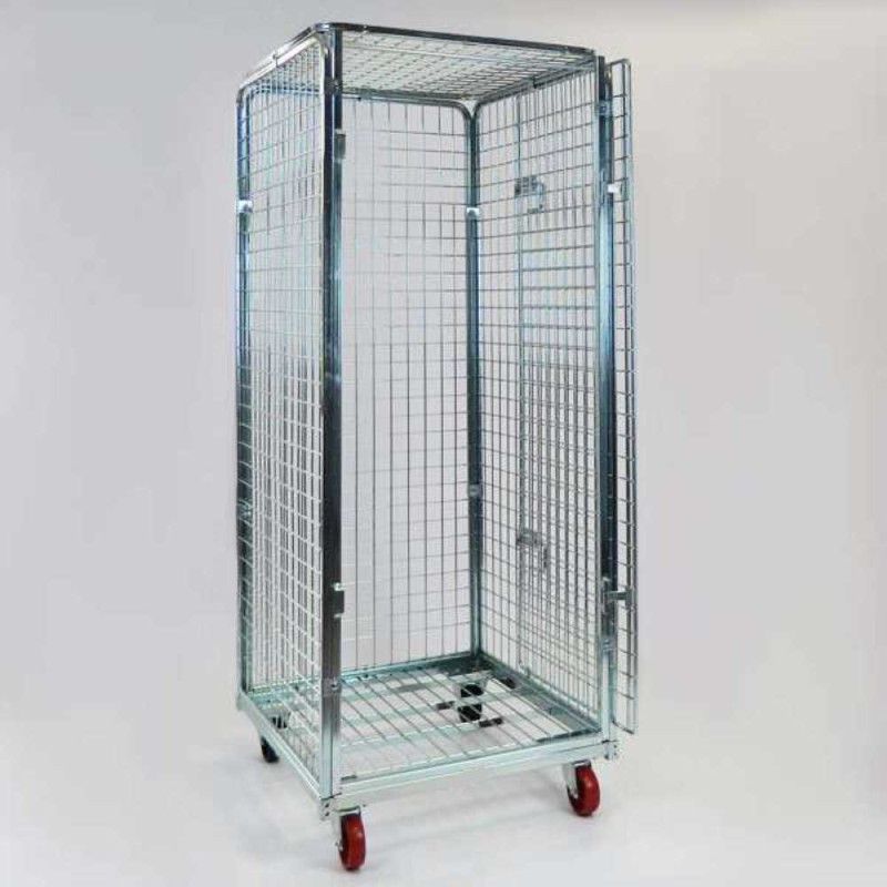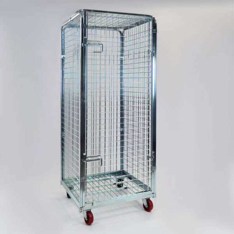 Roll container antifurto e sicurezza mm.700x800x1800h con 4 pareti a maglia mm.50x50 e coperchio superiore ideale per il trasporto e lo stoccaggio ed il ritiro di merci di valore.