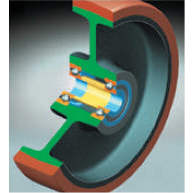 Ruota su staffa fissa con buona resistenza all’usura, agli urti, ai grassi ed a numerosi prodotti petroliferi, temono il contatto con vapore saturo, acidi, basi forti, soluzioni saline, solventi chetonici e clorurati.