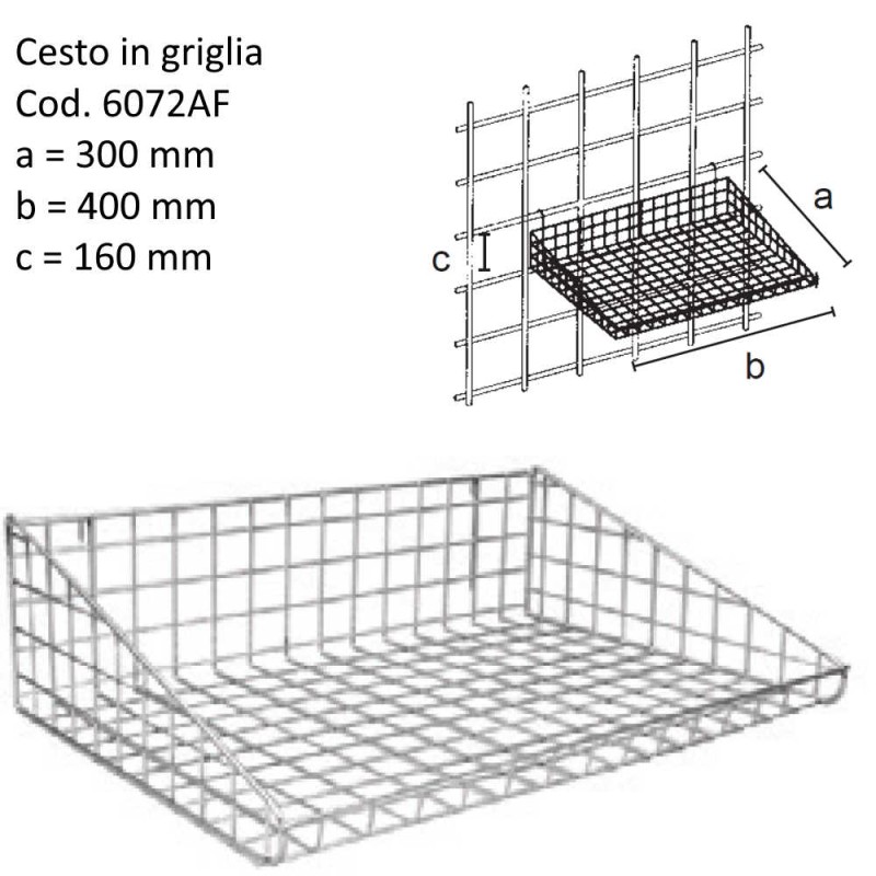 Cesto espositore contenitore autoportante a bocca di lupo in filo di acciaio L.128xP.40xH.30cm., per vendita a libero servizio articoli per l'edilizia, generi alimentari, articoli per ferramenta e materiali vari, per esposizione e stoccaggio prodotti sfusi e imballati, per minuteria ed inscatolati, materiali di consumo, settore tessile.