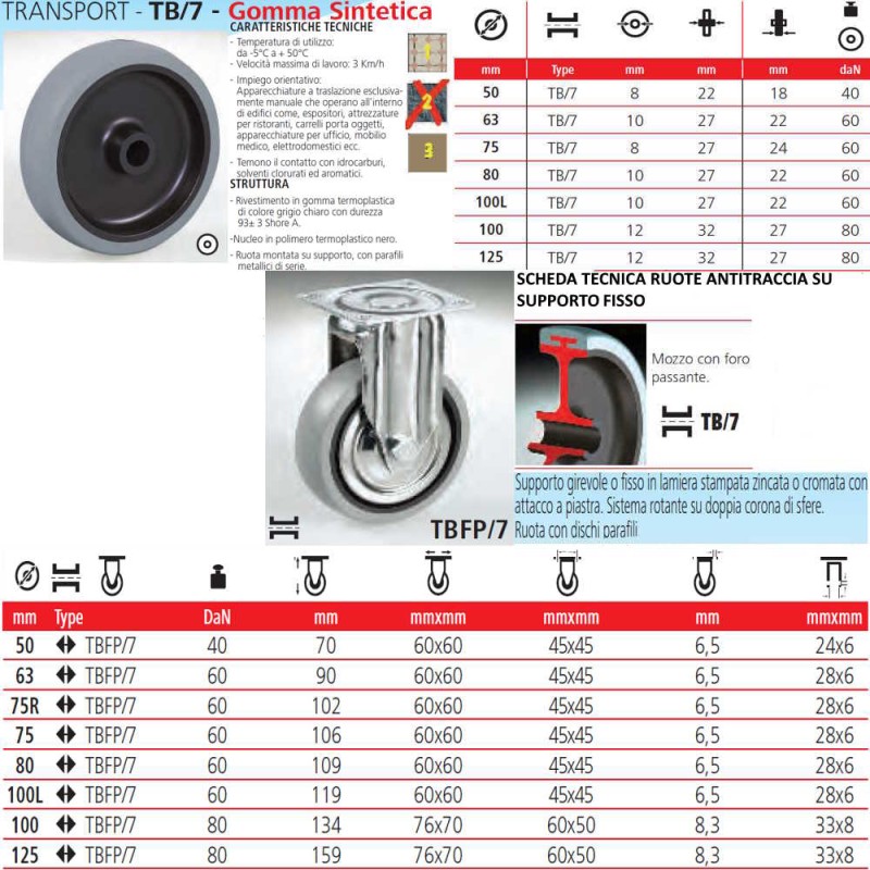 Ruote antitraccia per espositori, che temono il contatto con idrocarburi, solventi clorurati ed aromatici.