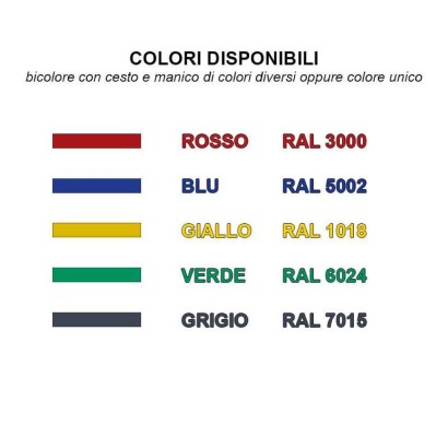Colore: disponibili vari colori (bicolore con cesto e manico di colori diversi oppure colore unico)