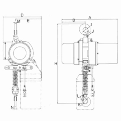 Il paranco elettrico è composto da un gancio solido e robusto e da un sistema di carrucole a cui viene trasmesso il movimento tramite l'assistente di catene.