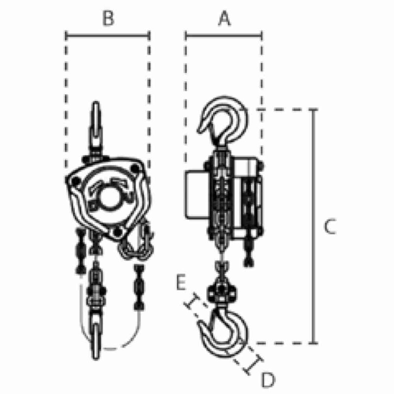 Argano professionale manuale robusto, per ferramenta, verricello sollevatore di design, con gancio di sospensione, paranco manuale mobile a catena scorrevole ad alta capacità di carico.