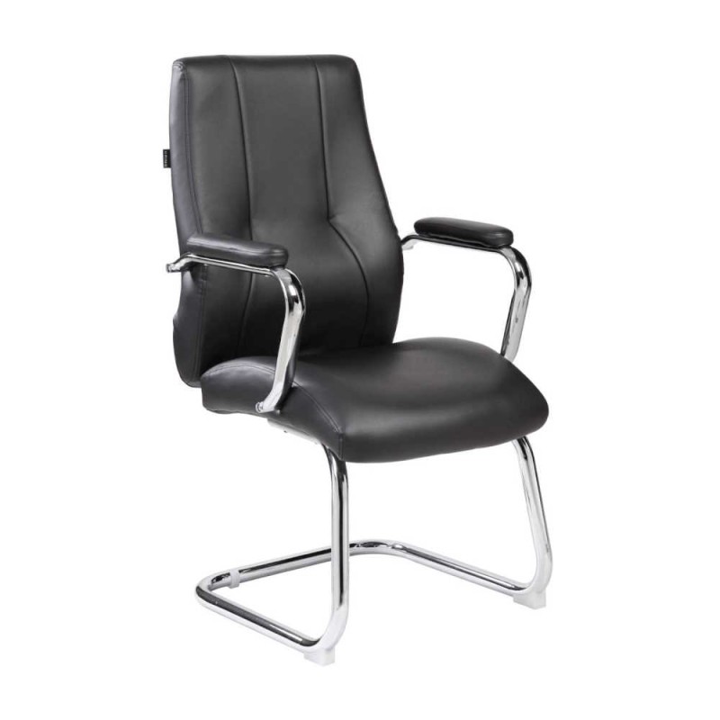 Poltrona sedia riunione attesa ufficio rivestita PU imbottito nero struttura base braccioli acciaio cromato New York E9349BKF