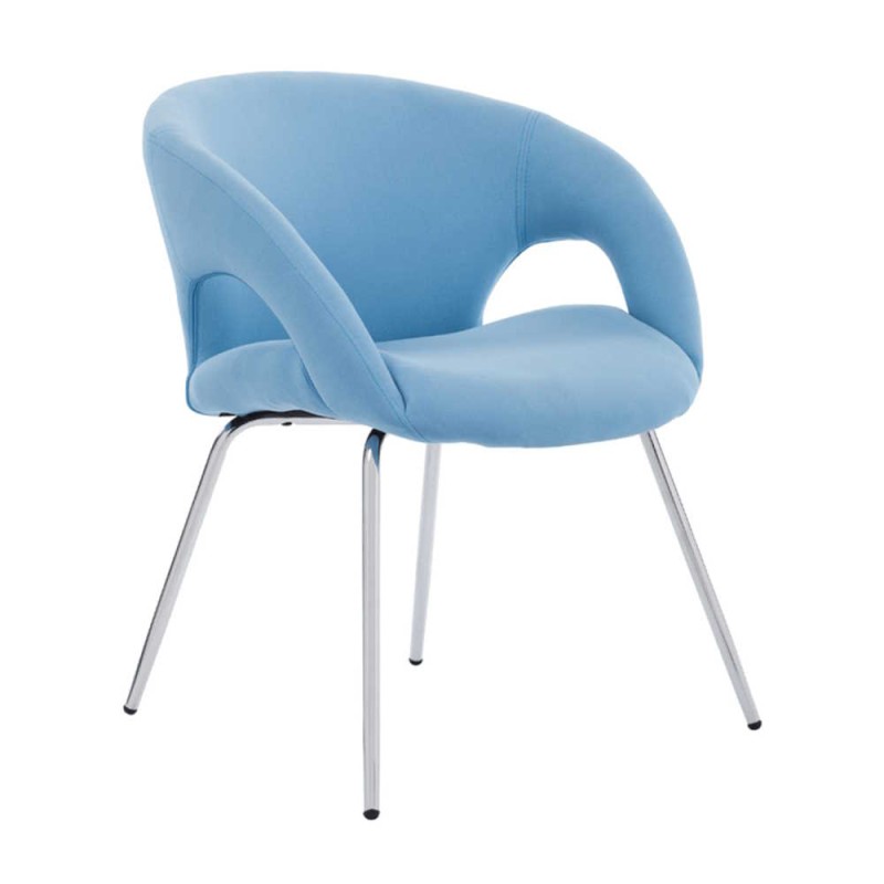 Poltrona, sedia per sala d'attesa, per ufficio da scrivania, con rivestimento seduta e schienale in tessuto imbottito azzurro, dotata di braccioli in tessuto imbottito azzurro, per arredamento di design, moderno, professionale per casa, studio, ufficio, congressi, show-room e per qualsiasi ambiente lavorativo, costruita con materiali di qualità, che la rendono duratura nel tempo.
