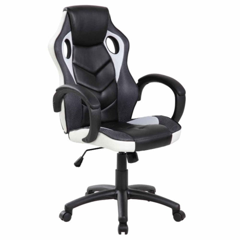 Sedia poltrona direzionale, presidenziale girevole con seduta ampia e sagomata in schiuma ad alta densità, rivestita in tessuto imbottito nero e regolabile in profondità e schienale regolabile in 4 posizioni, rivestito in rete tecnica traspirante nera con poggiatesta in PU e supporto lombare fisso con braccioli neri in morbido PU regolabili in altezza, larghezza e profondità, per arredamento casa, studio, ufficio, congressi, show-room.