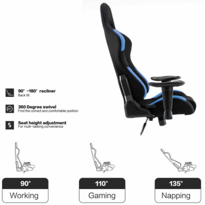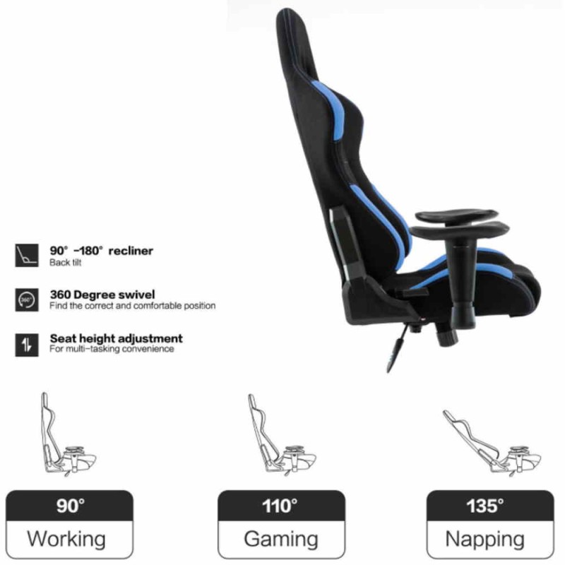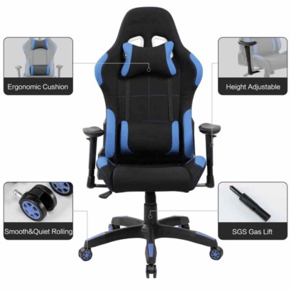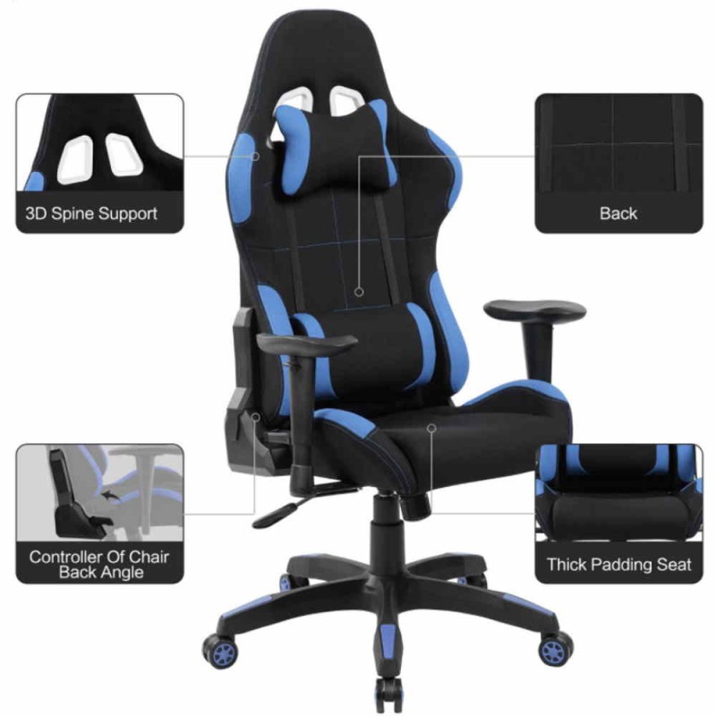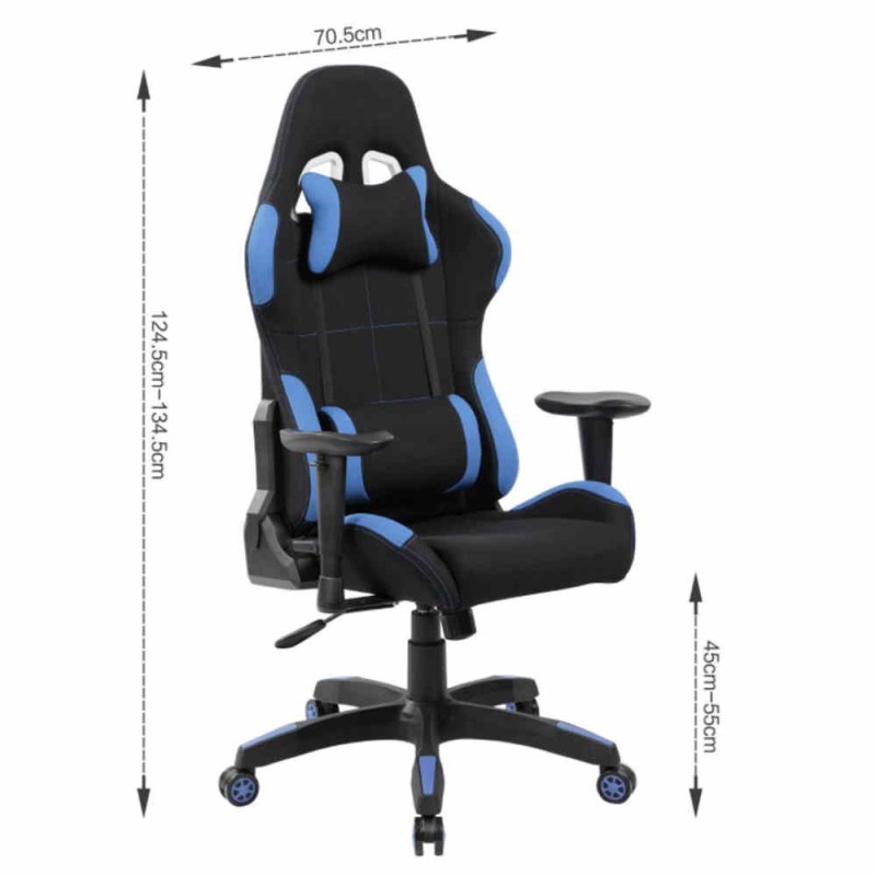 Sedia poltrona gaming adulto, rivestimento in PU colore blu e azzurra, Las Vegas, direzionale, ergonomica, regolabile, reclinabile e girevole con rotelle, per casa, ufficio, PC racing style per videogiocatori, per una seduta professionale e confortevole.