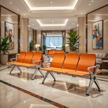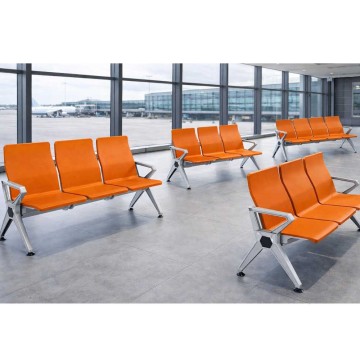 Panca a seduta collettiva a 3 posti progettata per ambienti ad alto traffico come ospedali, studi medici e aeroporti, caratterizzata da una scocca in poliuretano (PU) morbido ad alta resistenza e una struttura metallica robusta.