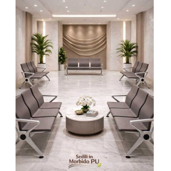 Mod. JC304PU-3F - Panca 3 posti per sala di attesa PU grigio tortora