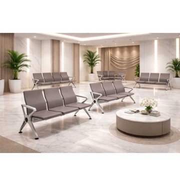 Panca a seduta collettiva a 3 posti progettata per ambienti ad alto traffico come ospedali, studi medici e aeroporti, caratterizzata da una scocca in poliuretano (PU) morbido ad alta resistenza e una struttura metallica robusta.