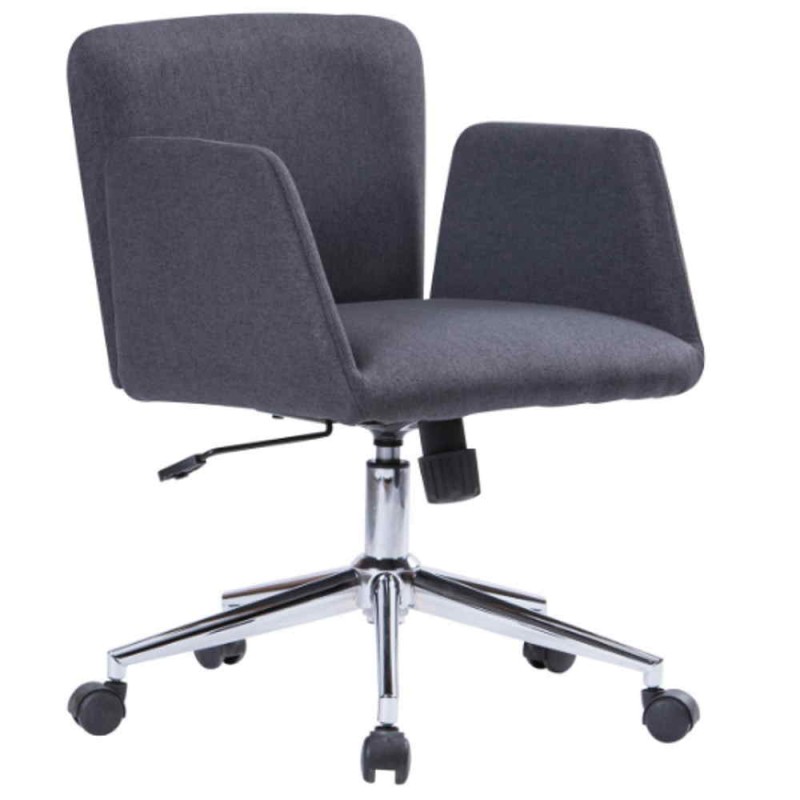 Sedia operativa per ufficio e cameretta elegante, moderna e robusta da tavolo, con struttura e razza in acciaio cromato con ruote piroettanti nere in nylon e sistema di elevazione a gas per la regolazione della seduta in altezza.