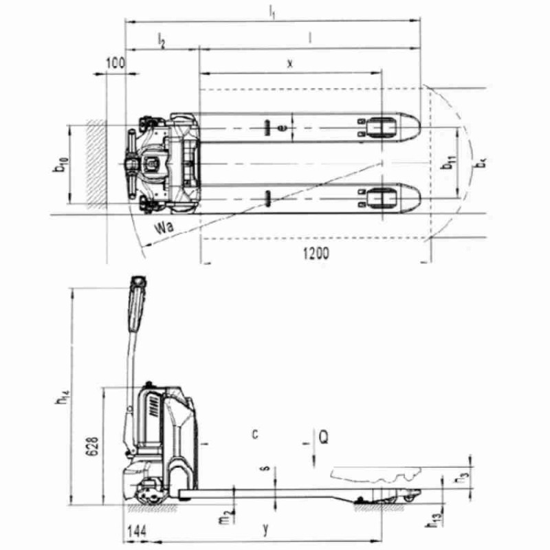 Macchina a sollevamento elettrico composta da un timone con pulsanti di grandi dimensioni, accessibili facilmente anche con uso di guanti. Timone provvisto di funzione tartaruga, indicatore di carica, conta ore, codice diagnostica errore, pin code - Timone Can-bus, Impianto elettronico Curtis. E' possibile usare il transpallet anche con la funzione di guida con manico in posizione verticale, che aiuta nei lavori in aree strette specialmente camion ed ascensori.